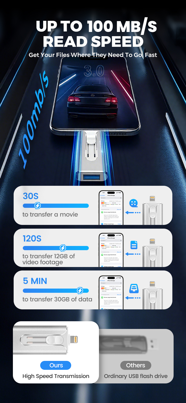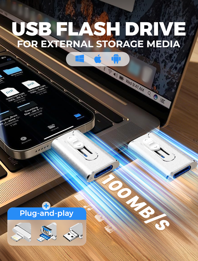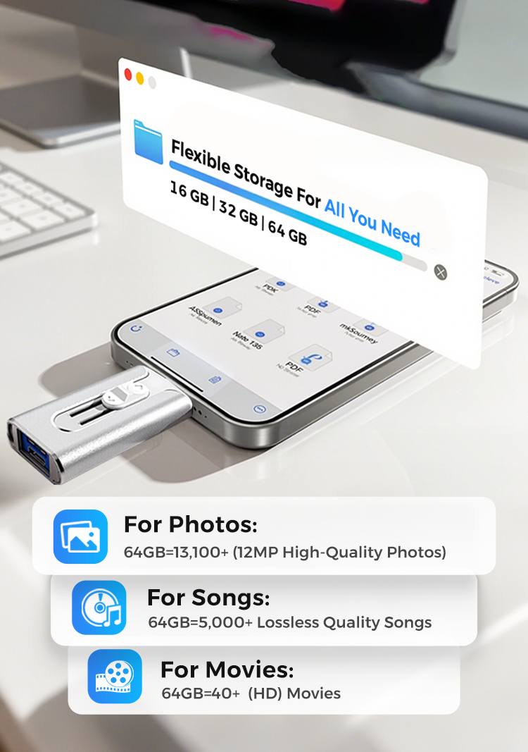 • 16GB~1TB Micro USB + MFi Certified Lightning + 8 Pin + USB 3.0 ⚡4 in1 Flash Drive for iPhone/iPad/Android/PC⚡
